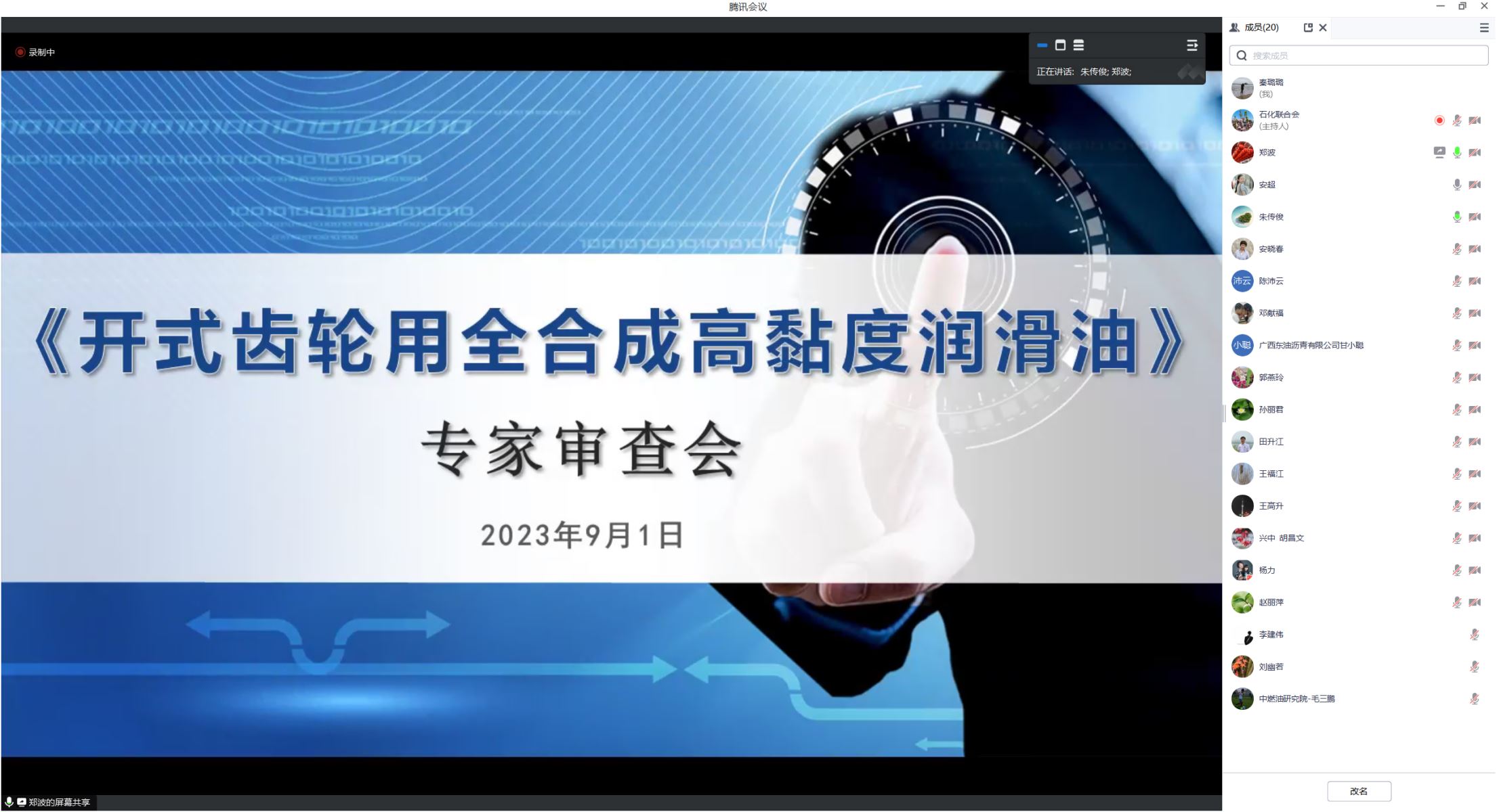 2023年9月1日,中國石油和化學(xué)工業(yè)聯(lián)合會組織召開《開式齒輪用全合成高黏度潤滑油》《輥壓機軸承潤滑脂》兩項團(tuán)體標(biāo)準(zhǔn)審查會。中海油天津化工研究設(shè)計院教授級高工朱傳俊主持會議。