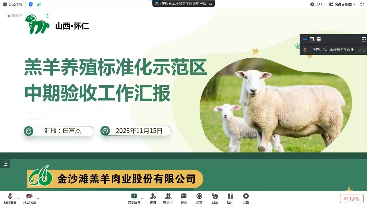 2023年11月15日,羔羊養(yǎng)殖標(biāo)準(zhǔn)化示范區(qū)年度考核評估會以網(wǎng)絡(luò)會議形式召開??己嗽u估小組組長由山西省市場監(jiān)督管理局標(biāo)準(zhǔn)管理處副處長李昆擔(dān)任,考核組成員由農(nóng)業(yè)和標(biāo)準(zhǔn)化領(lǐng)域?qū)<医M成。 懷仁市市場監(jiān)督管理局黨組成員王肇清、標(biāo)準(zhǔn)化股徐巧紅出席會議,懷仁市金沙灘羔羊肉業(yè)股份有限公司副總經(jīng)理白富杰、質(zhì)量部經(jīng)理李旭東、辦公室主任石增蓮參加會議。
