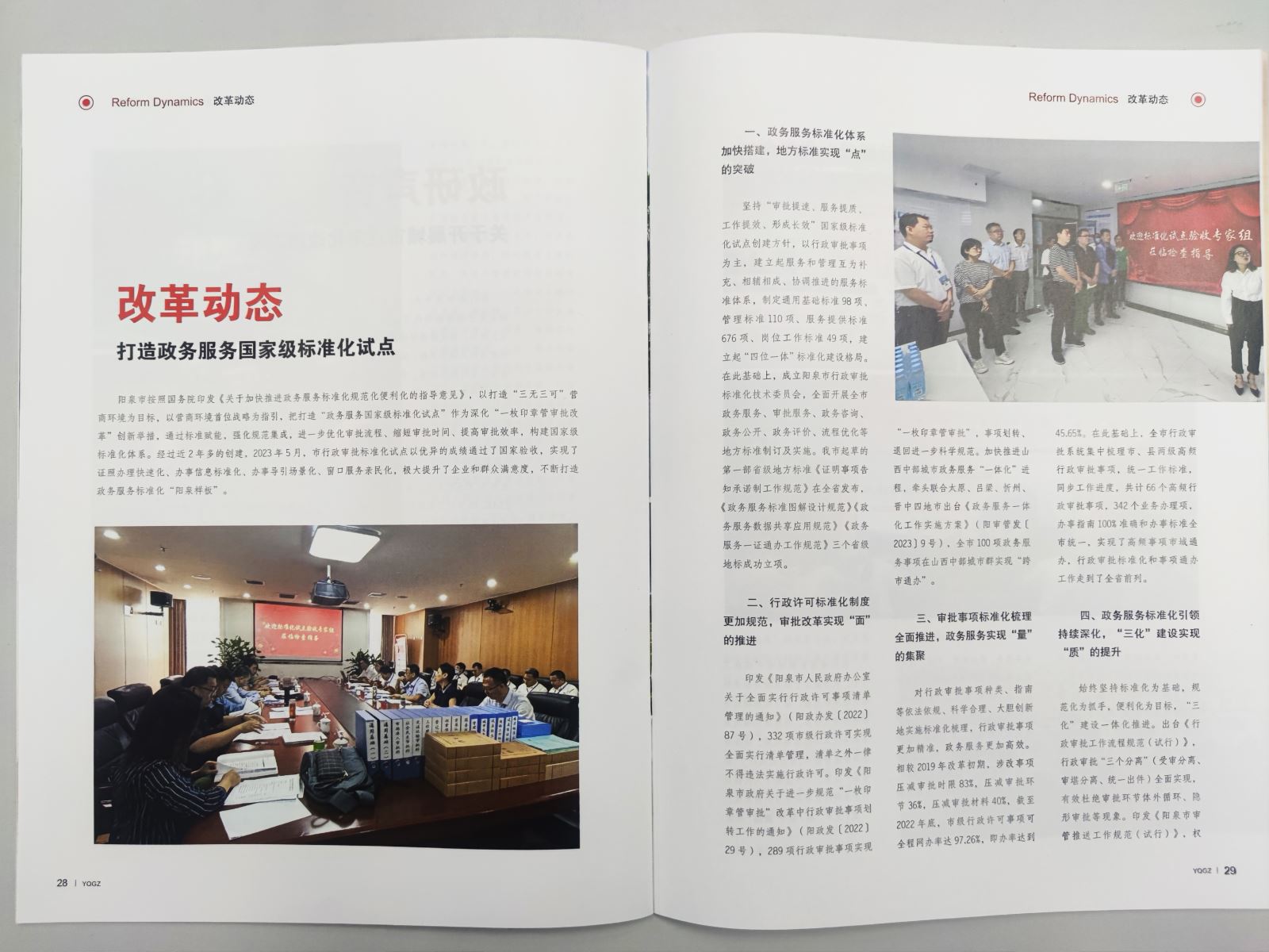 近日,由陽泉市行政審批服務(wù)管理局供稿的《改革動(dòng)態(tài)——打造政務(wù)服務(wù)國(guó)家級(jí)標(biāo)準(zhǔn)化試點(diǎn)》在《陽泉工作》2024年第一期刊登。