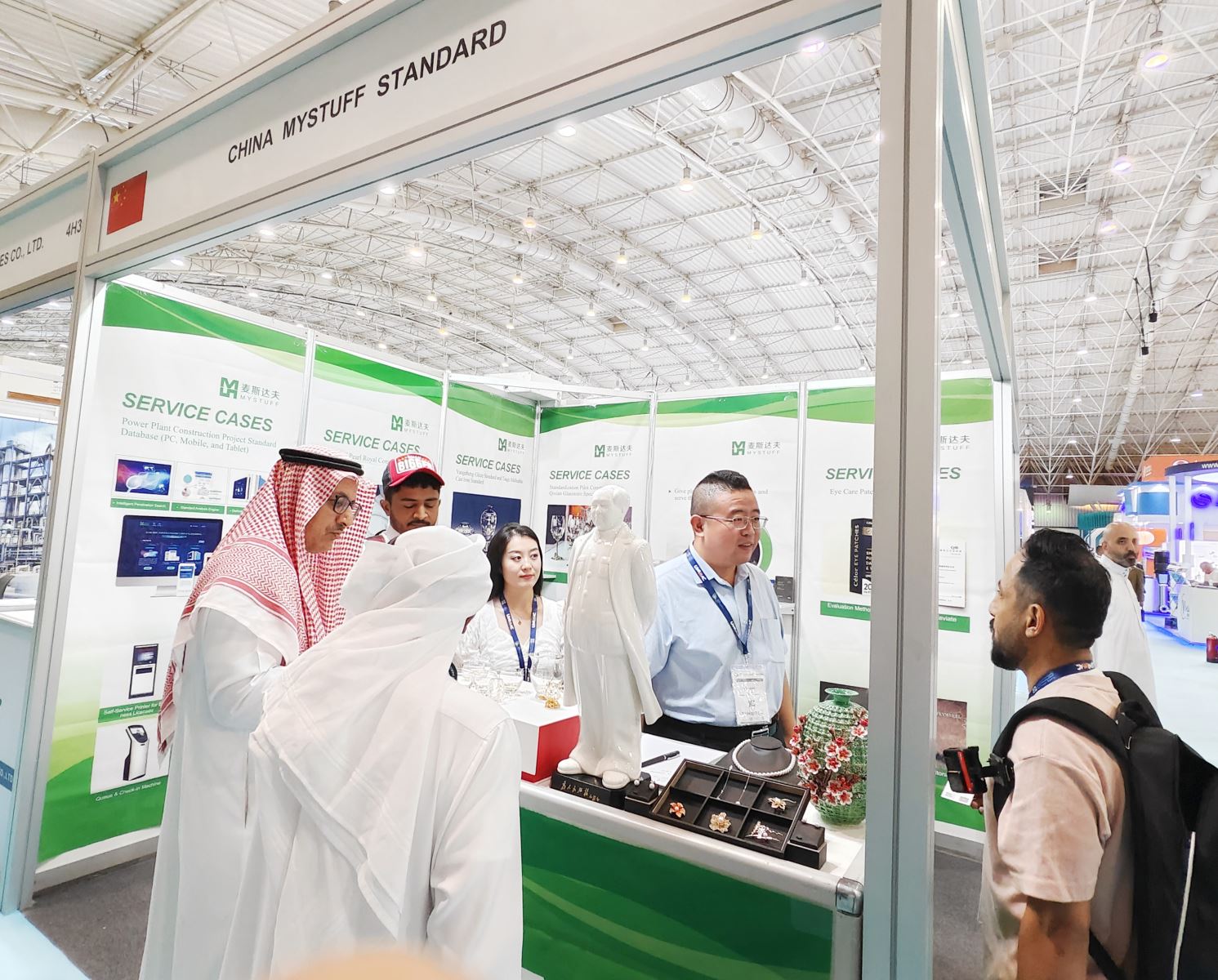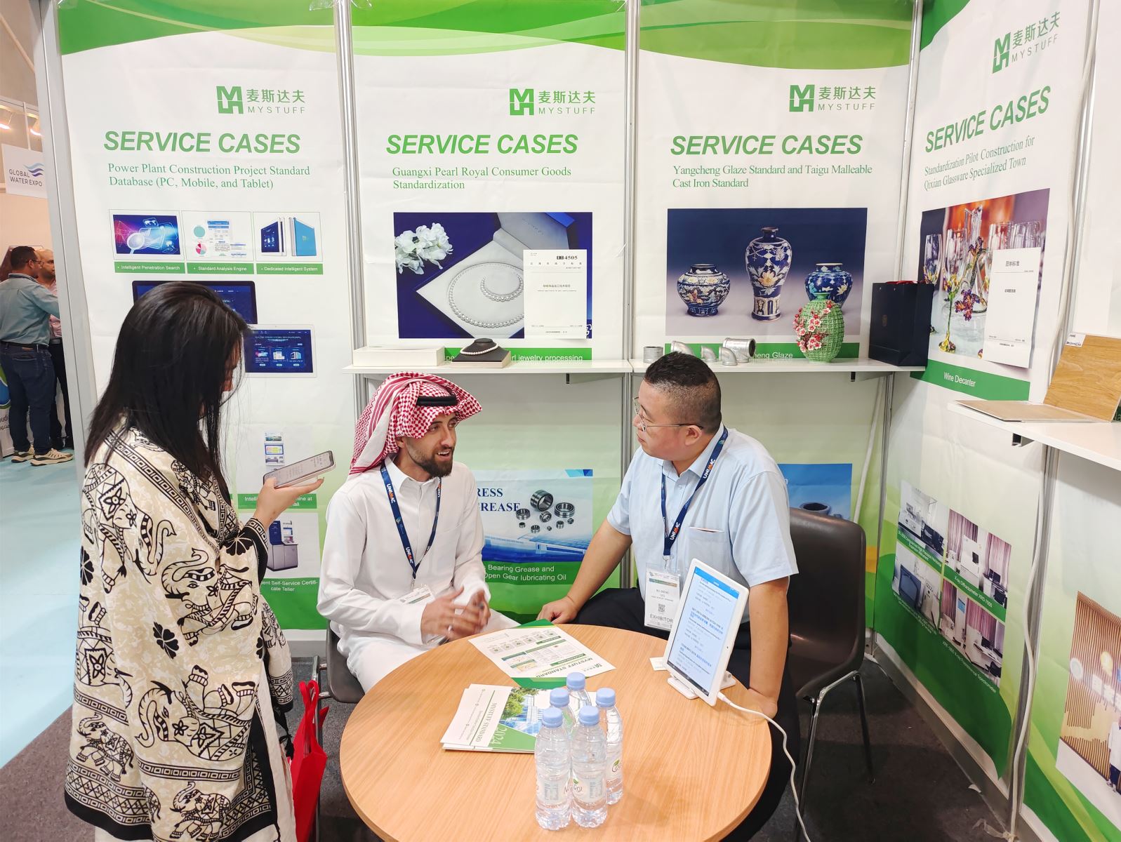 麥斯達夫在展會現(xiàn)場向企業(yè)代表、專業(yè)觀眾以及展商全面展示了標準化服務典型案例及國內客戶的標準化產品,其中電力工程建設標準數(shù)據庫、珍珠飾品、琉璃琺華器、鑄造管件、玻璃器皿、護眼貼、飛輪儲能等產品受到沙特、印度、巴基斯坦、埃及、蘇丹、科威特、敘利亞等國家參展代表的高度關注,并與多家企業(yè)達成合作意向。