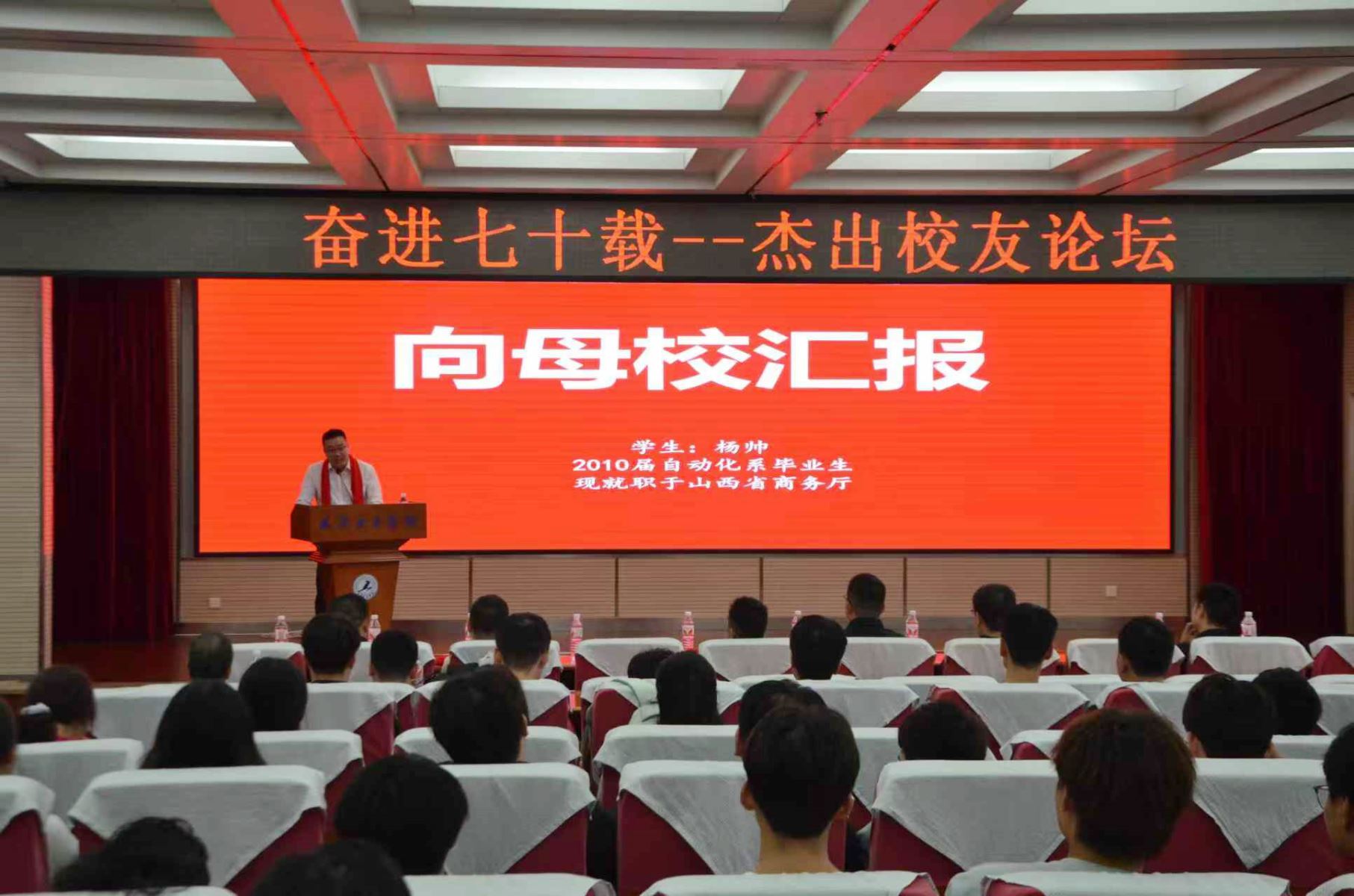 2024年9月28日,太原工業(yè)學(xué)院建校70周年杰出校友論壇在圖書館報告廳召開。論壇由太原工業(yè)學(xué)院校友會主辦,自動化系、太工北京校友會承辦。太原工業(yè)學(xué)院副院長趙志誠出席論壇并致歡迎辭。自動化系黨總支書記呂敬,黨總支副書記、系主任劉志成,科研副主任喬俊福出席論壇。太工北京校友會會長、麥斯達夫標(biāo)準(zhǔn)化首席執(zhí)行官鄭波主持論壇。