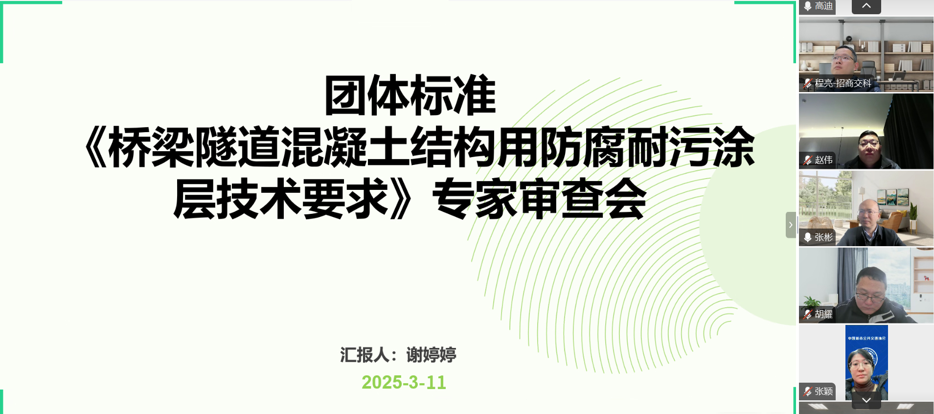 2025年3月11日,中國城市公共交通協(xié)會以線上會議形式組織召開團體標準《橋梁隧道混凝土結(jié)構(gòu)用防腐耐污涂層技術(shù)要求》專家審查會。中國地質(zhì)大學(xué)(北京)、招商局重慶交通科研設(shè)計院有限公司、中國工程建設(shè)標準化協(xié)會、中鐵隧道集團二處有限公司、中國城市公共交通協(xié)會的五名專家組成標準審查專家組。標準主編單位中宜硅材(蘇州)納米新材料科技有限公司總經(jīng)理陳海龍、技術(shù)經(jīng)理胡耀以及參編單位代表參加會議。會議由麥斯達夫標準化市場總監(jiān)、蘇州公司總經(jīng)理王釗柱主持。