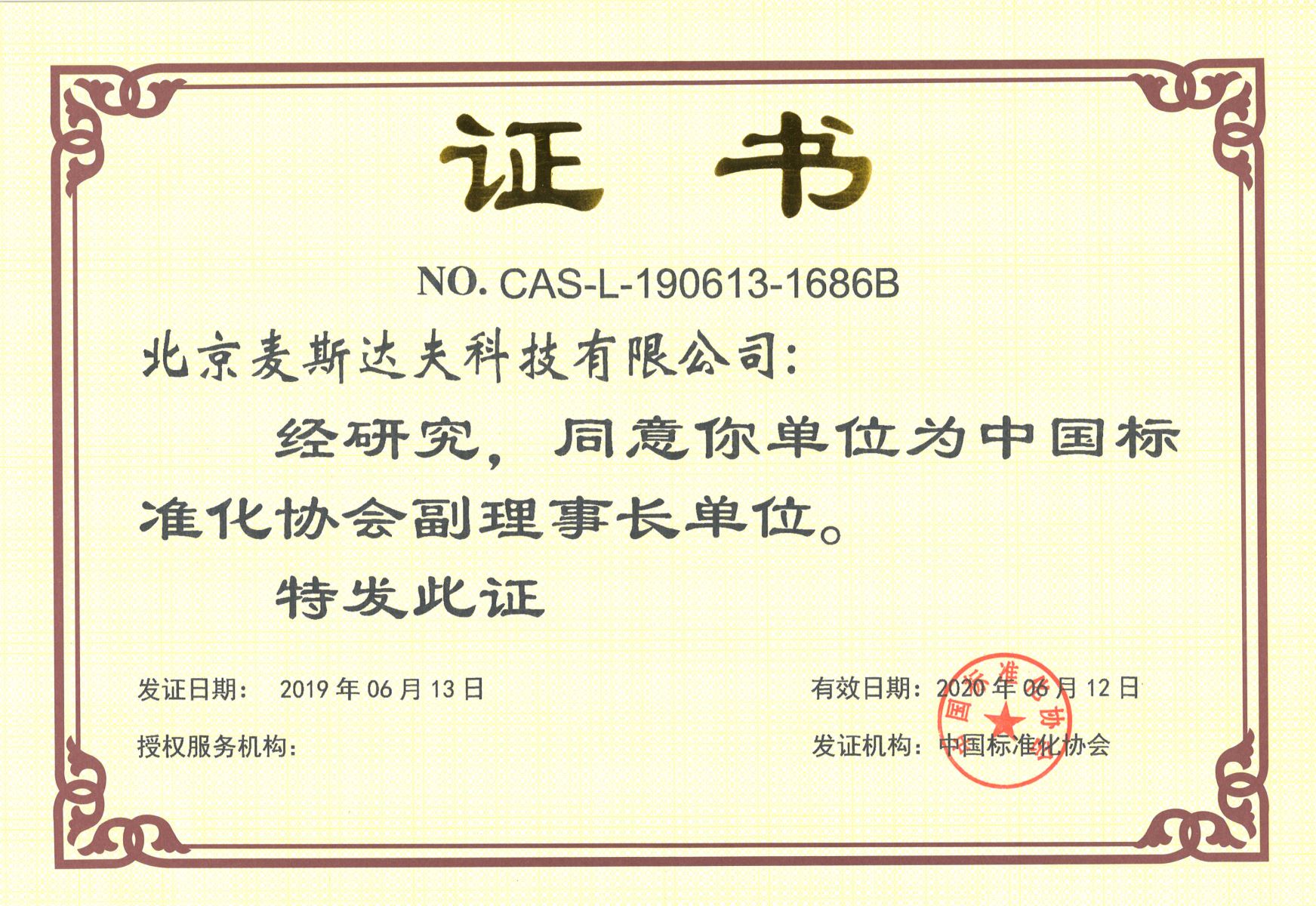 2019年6月13日,麥斯達夫當(dāng)選中國標(biāo)準(zhǔn)化協(xié)會副理事長單位。