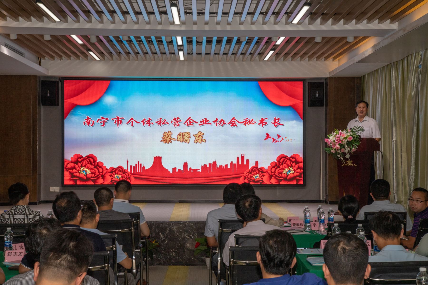 會議開幕環(huán)節(jié),南寧市個體私營企業(yè)協(xié)會秘書長蔡曙東、廣西麥斯達(dá)夫標(biāo)準(zhǔn)化服務(wù)有限公司總經(jīng)理黃慶旦分別致歡迎辭。