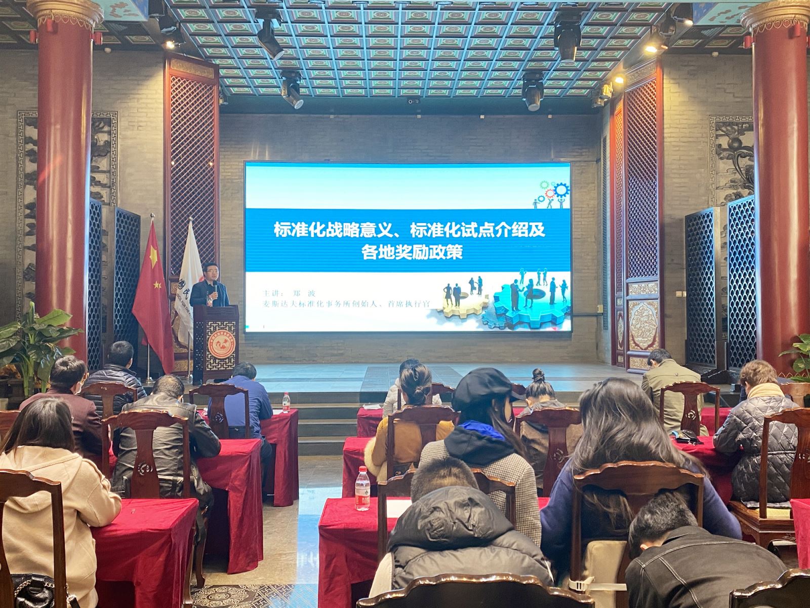 麥斯達(dá)夫標(biāo)準(zhǔn)化事務(wù)所創(chuàng)始人、首席執(zhí)行官鄭波就標(biāo)準(zhǔn)化的戰(zhàn)略意義、標(biāo)準(zhǔn)化試點(diǎn)介紹及各地獎(jiǎng)勵(lì)政策進(jìn)行了講解和分享。董春松就中國一鄉(xiāng)一品標(biāo)準(zhǔn)化工作程序及實(shí)踐進(jìn)行了經(jīng)驗(yàn)分享。