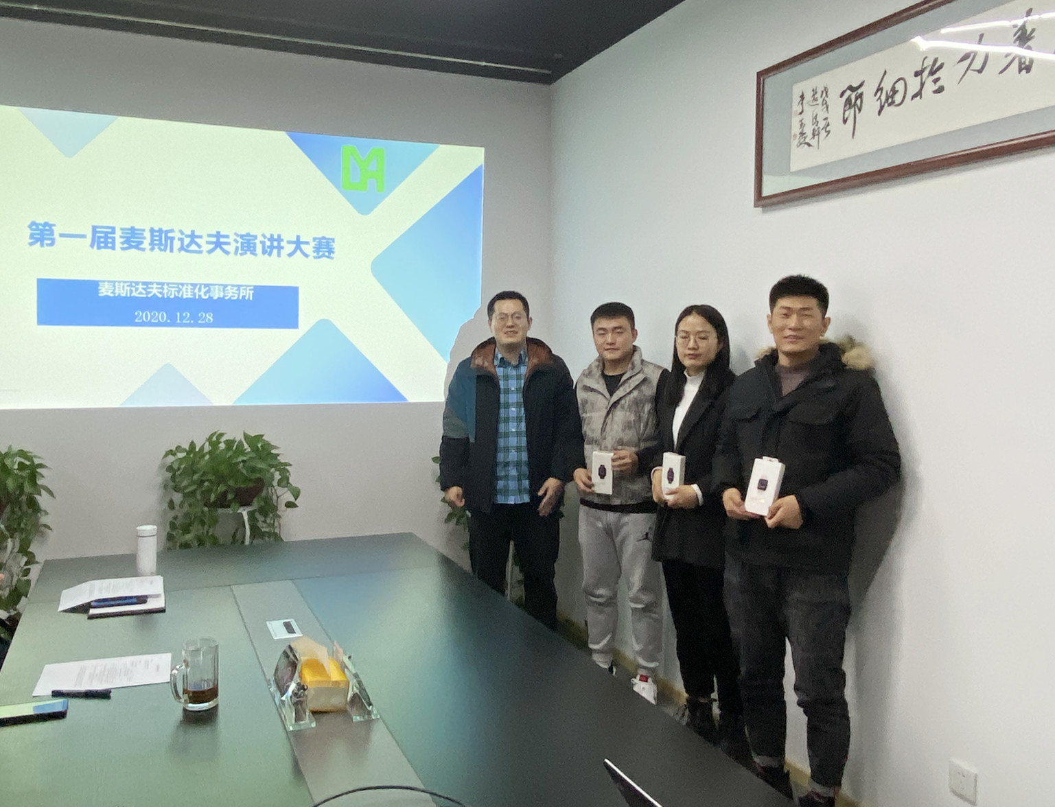 2020年12月28日,第一屆麥斯達夫演講大賽在北京總部會議室成功舉辦。比賽由首席執(zhí)行官、黨支部書記鄭波,首席運營官、工會主席王超,寧波公司總經(jīng)理王振凱,黨建指導(dǎo)員郝宏強四人擔任評委。設(shè)一等獎一名、二等獎兩名、三等獎三名,比賽共10名選手參加。