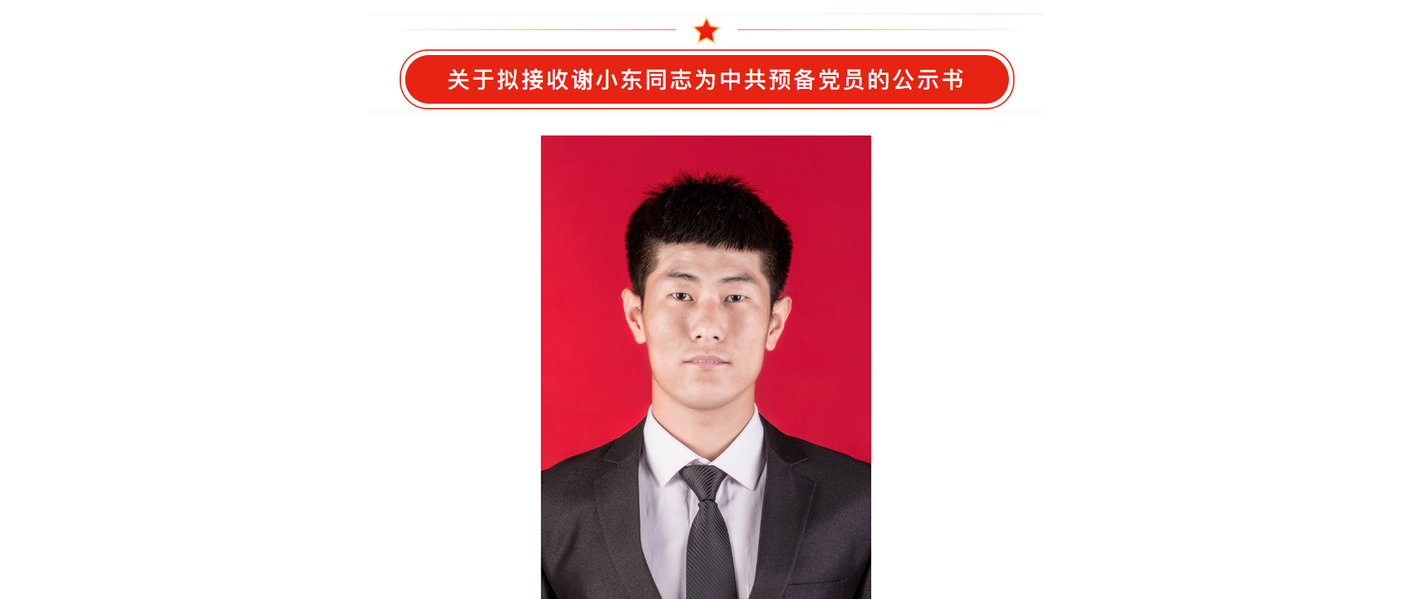 關于擬接收謝小東同志為中共預備黨員的公示書