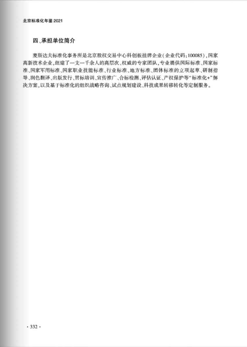 近日,由首都標(biāo)準(zhǔn)化委員會(huì)辦公室組織編纂的《北京標(biāo)準(zhǔn)化年鑒2021》正式發(fā)布。此書(shū)自2011年至今已連續(xù)出版9冊(cè),是一部反映北京市標(biāo)準(zhǔn)化工作的綜合性資料工具書(shū)和史料文獻(xiàn)。麥斯達(dá)夫標(biāo)準(zhǔn)化服務(wù)業(yè)試點(diǎn)建設(shè)經(jīng)驗(yàn)“聚力科技創(chuàng)新 以市場(chǎng)化引領(lǐng)標(biāo)準(zhǔn)化服務(wù)業(yè)高質(zhì)量發(fā)展”成功入選。