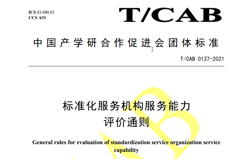 近日,由中國(guó)標(biāo)準(zhǔn)化研究院、麥斯達(dá)夫標(biāo)準(zhǔn)化、蘇州前石標(biāo)準(zhǔn)、合肥斯坦德?tīng)柕碌葐挝还餐兄频膱F(tuán)體標(biāo)準(zhǔn)《標(biāo)準(zhǔn)化服務(wù)機(jī)構(gòu)服務(wù)能力評(píng)價(jià)通則》(T/CAB 0127-2021),由中國(guó)產(chǎn)學(xué)研合作促進(jìn)會(huì)正式發(fā)布。