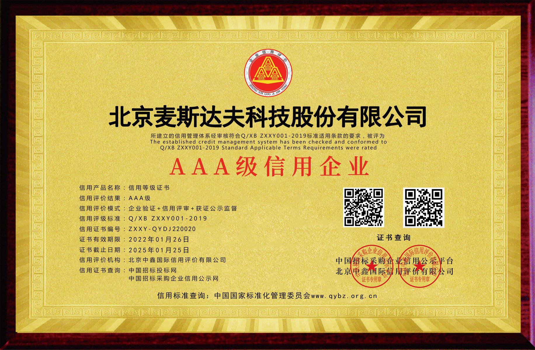 近日,北京麥斯達(dá)夫科技股份有限公司積極構(gòu)建行業(yè)領(lǐng)先的信用體系再傳佳績,被中鑫國信、中國招投標(biāo)(政府采購)企業(yè)信用評價與公示平臺授予“3A級企業(yè)信用等級”,并榮獲“3A級質(zhì)量服務(wù)信譽(yù)單位”、“3A級誠信經(jīng)營示范單位”、“3A級資信等級證書”、“3A級重服務(wù)守信用企業(yè)”及“3A級重質(zhì)量守信用企業(yè)”資質(zhì)。