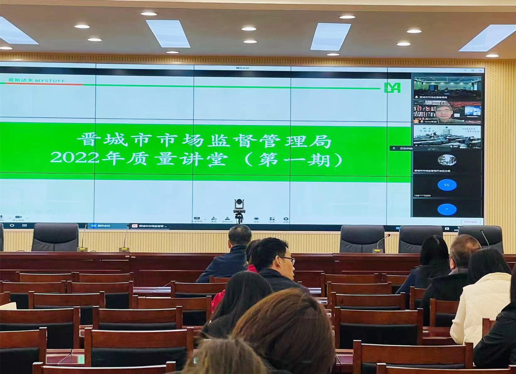 2022年4月8日,晉城市市場監(jiān)督管理局“2022年質(zhì)量講堂(第一期)”培訓(xùn)會(huì)議成功召開。晉城市市場監(jiān)督管理局一級(jí)調(diào)研員尚濟(jì)民、質(zhì)量發(fā)展科科長郝琛瑜及市局相關(guān)科室人員、各縣(市、區(qū))負(fù)責(zé)質(zhì)量發(fā)展的分管領(lǐng)導(dǎo)和科室人員參加會(huì)議。會(huì)議由郝琛瑜主持,麥斯達(dá)夫標(biāo)準(zhǔn)化CMO朱劍進(jìn)行專題培訓(xùn)。