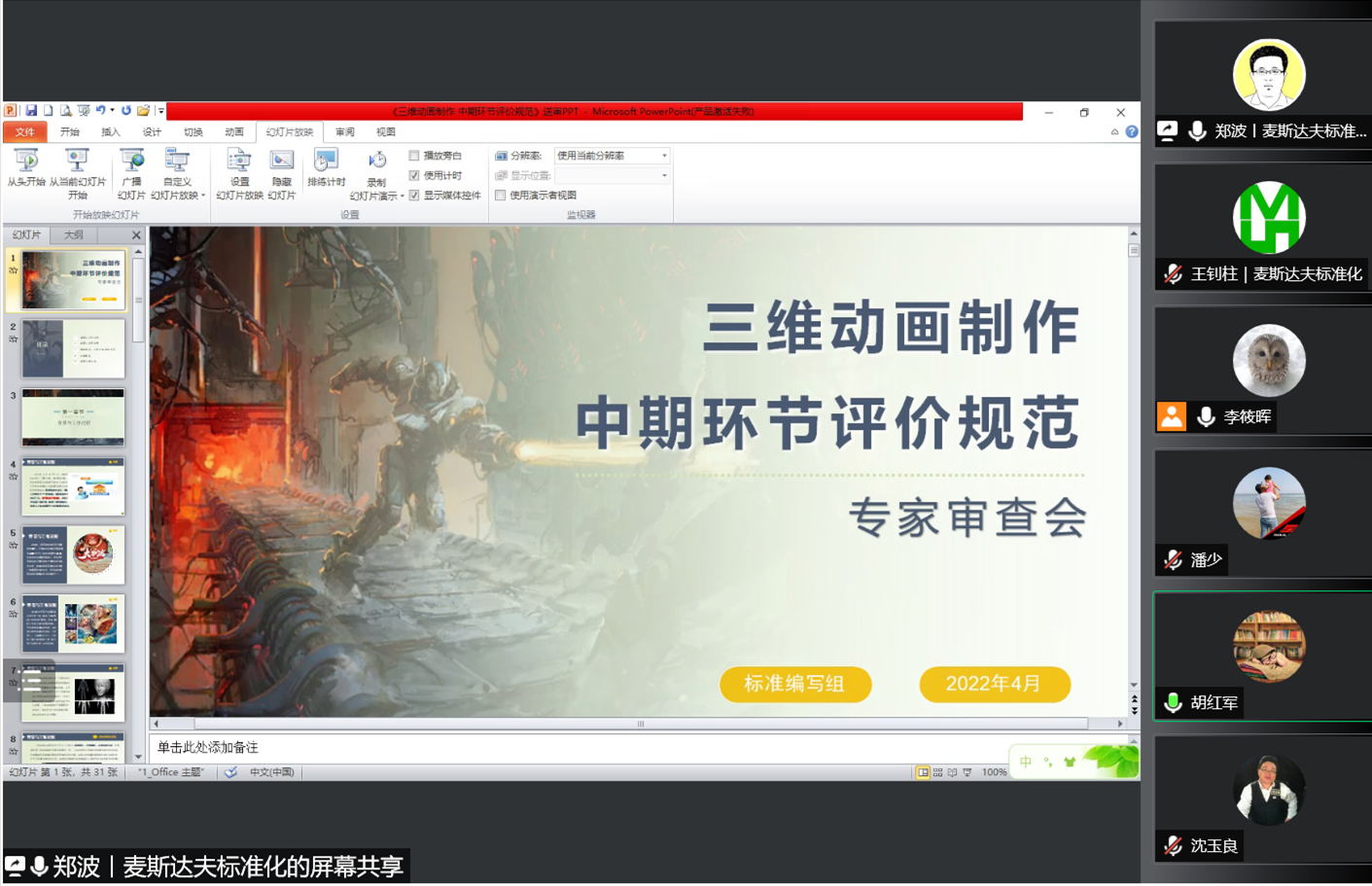 2022年4月14日,正值中國(guó)動(dòng)畫(huà)百年之際,文化行業(yè)標(biāo)準(zhǔn)《三維動(dòng)畫(huà)制作 中期環(huán)節(jié)評(píng)價(jià)規(guī)范》專家審查會(huì)以線上視頻會(huì)議形式召開(kāi)。來(lái)自北京郵電大學(xué)、中國(guó)傳媒大學(xué)、中國(guó)標(biāo)準(zhǔn)化研究院、浙江中南卡通股份有限公司、全國(guó)動(dòng)漫游戲產(chǎn)業(yè)標(biāo)準(zhǔn)化技術(shù)委員會(huì)的五名專家組成標(biāo)準(zhǔn)評(píng)審專家組。標(biāo)準(zhǔn)起草組成員單位北京麥斯達(dá)夫科技股份有限公司首席執(zhí)行官鄭波,北京靈魂石數(shù)字科技有限公司總經(jīng)理?xiàng)罟鹈?、副總?jīng)理丁文、運(yùn)營(yíng)總監(jiān)潘俊紹參加會(huì)議。會(huì)議由全國(guó)動(dòng)漫游戲產(chǎn)業(yè)標(biāo)準(zhǔn)化技術(shù)委員會(huì)秘書(shū)處李筱暉主持。