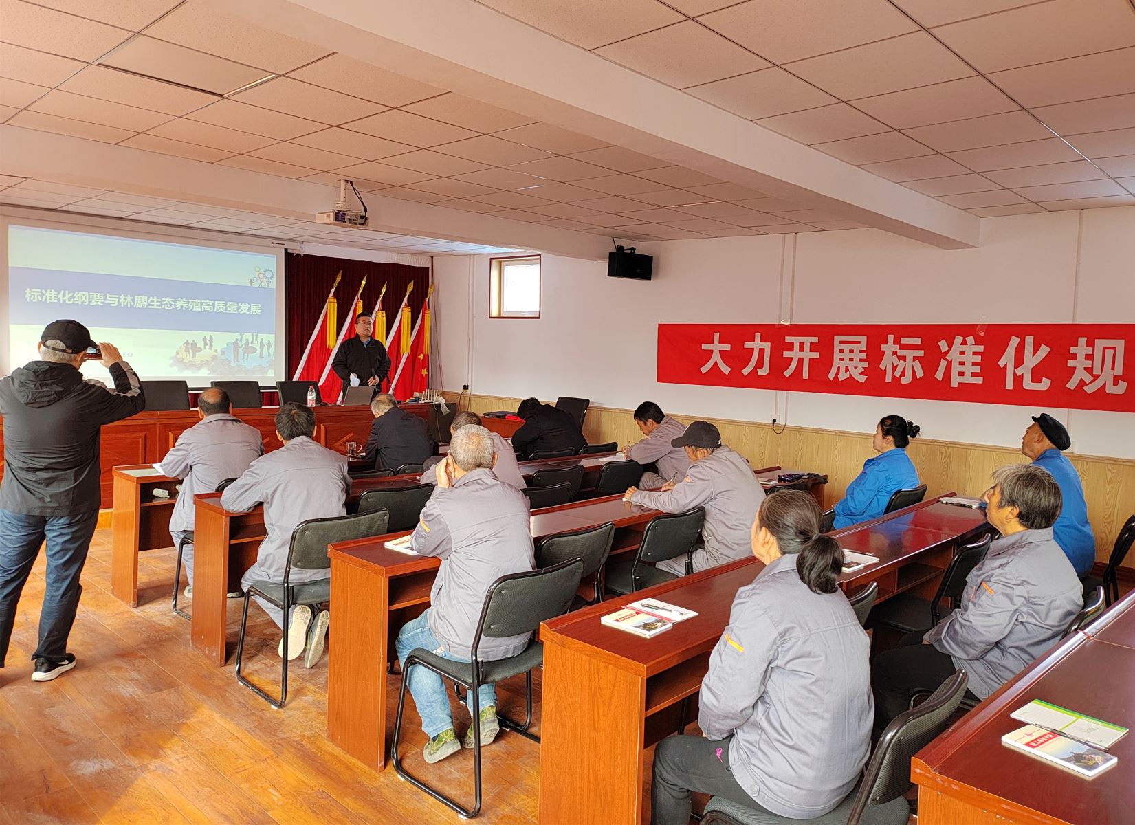 鄭波解讀了《國家標準化發(fā)展綱要》,講解了農(nóng)業(yè)標準化示范區(qū)的意義作用、主要任務和創(chuàng)建流程,并重點闡述了林麝生態(tài)養(yǎng)殖標準化的實施路徑。講座結束后組織了隨堂測驗。