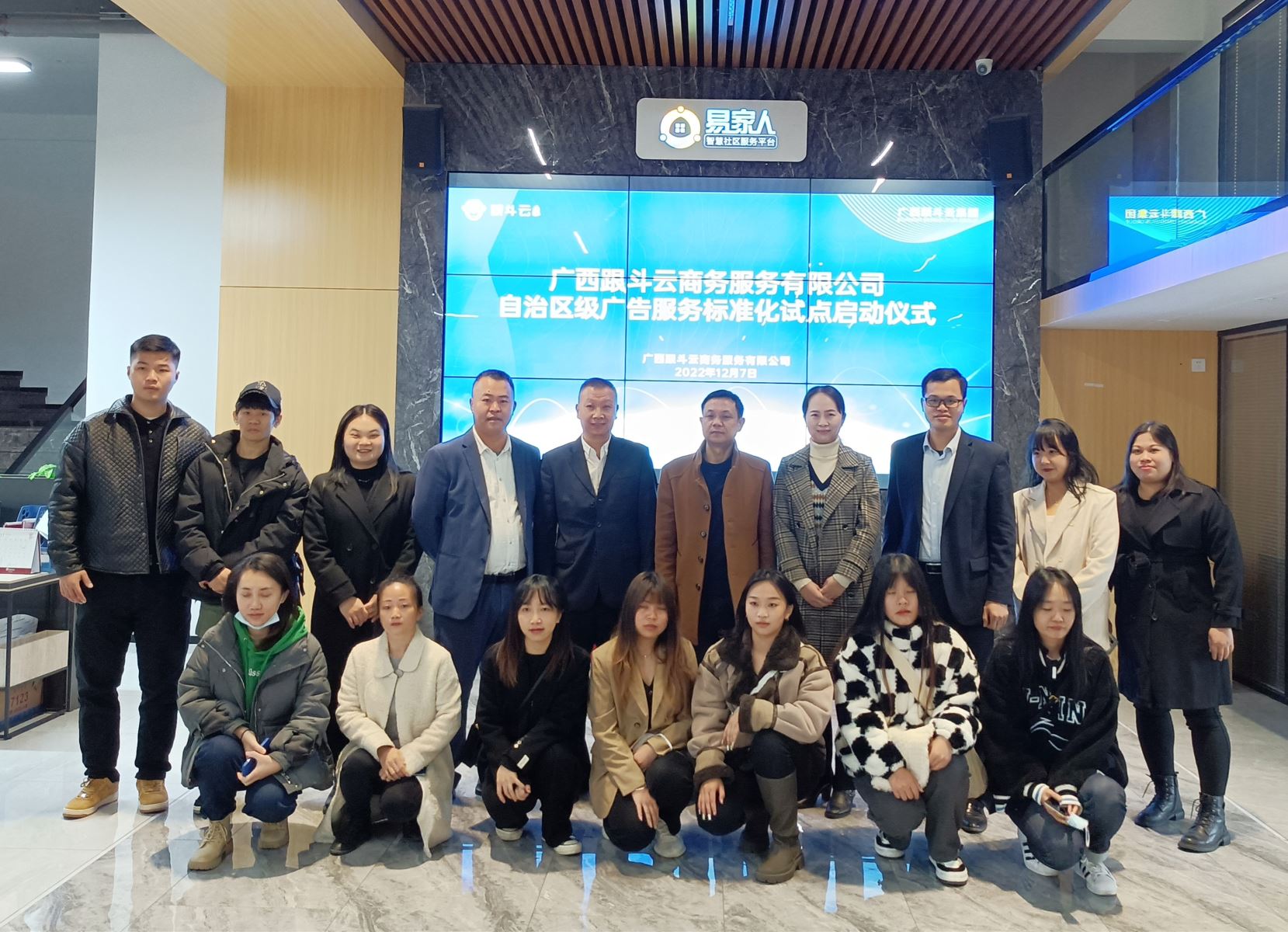 2022年12月7日,廣西壯族自治區(qū)級標準化試點項目——廣西跟斗云商務(wù)服務(wù)有限公司廣告服務(wù)標準化試點啟動儀式在廣西跟斗云商務(wù)服務(wù)有限公司會議室召開。南寧市市場監(jiān)督管理局四級調(diào)研員臧偉洲、標準化科科長馬霞,青秀區(qū)市場監(jiān)督管理局副局長劉成偉,廣西跟斗云商務(wù)服務(wù)有限公司總經(jīng)理遲玉成,跟斗云集團事業(yè)二部負責人黃婭婕,工廠運營總監(jiān)廖煒瑩等人出席會議。跟斗云集團其他有關(guān)部門及門店負責人參加會議。會議由廣西跟斗云商務(wù)服務(wù)有限公司人事主管覃嬌主持。