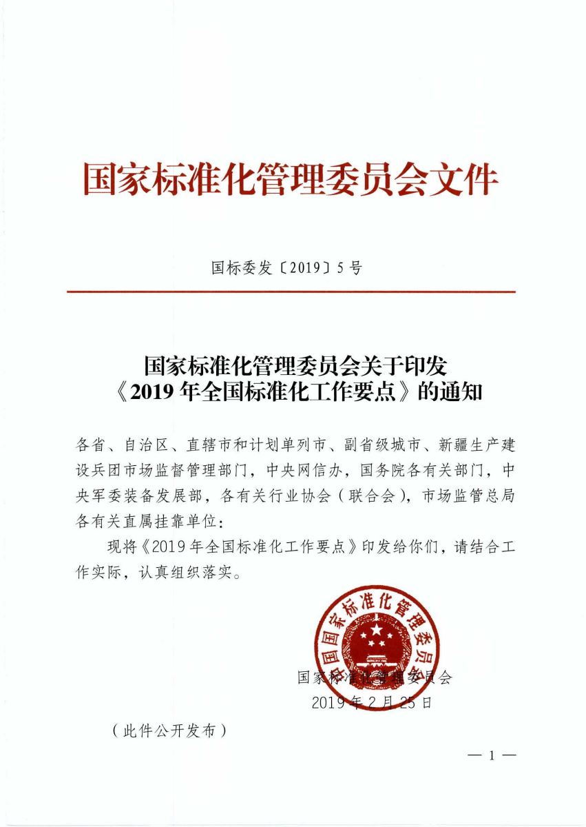 2019年全國標(biāo)準(zhǔn)化工作要點