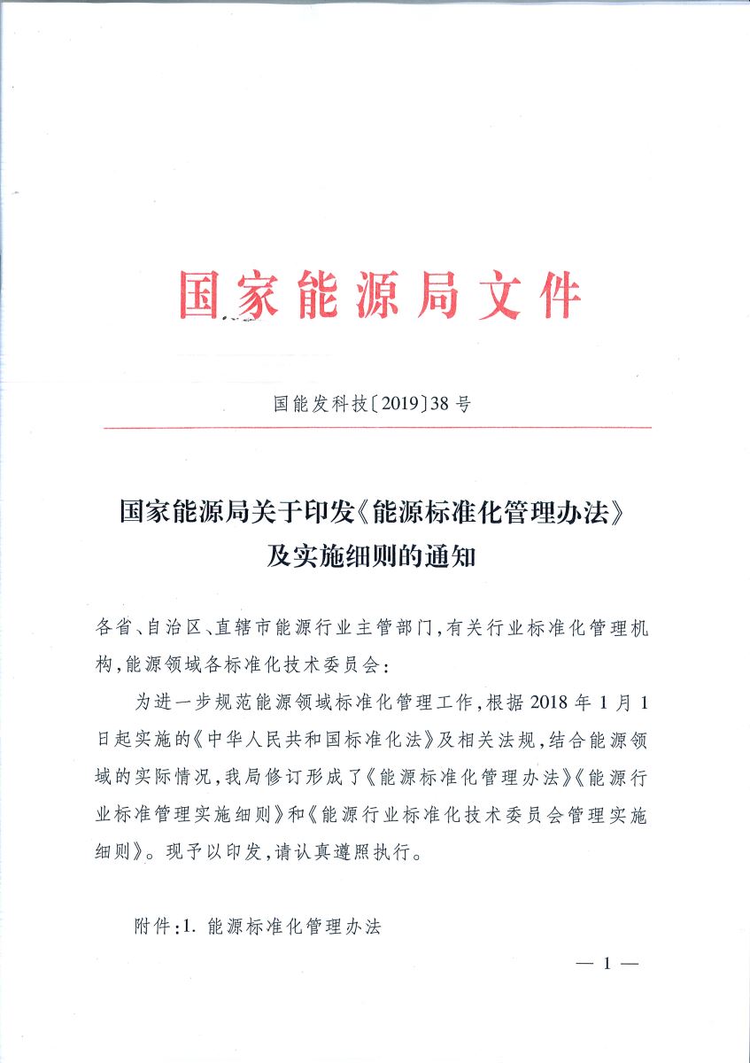 國家能源局關于印發(fā)《能源標準化管理辦法》及實施細則的通知
