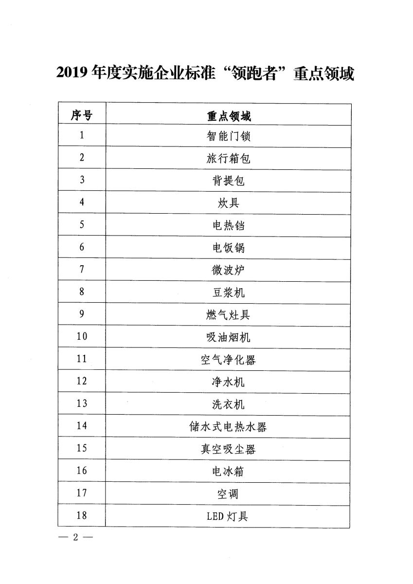 市場(chǎng)監(jiān)管總局關(guān)于印發(fā)《2019年度實(shí)施企業(yè)標(biāo)準(zhǔn)“領(lǐng)跑者”重點(diǎn)領(lǐng)域》的公告