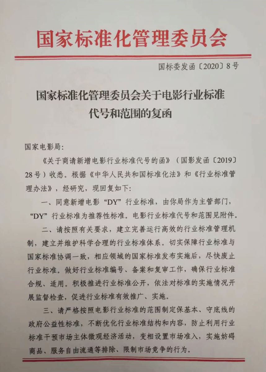 新增行標丨“DY”電影行業(yè)標準