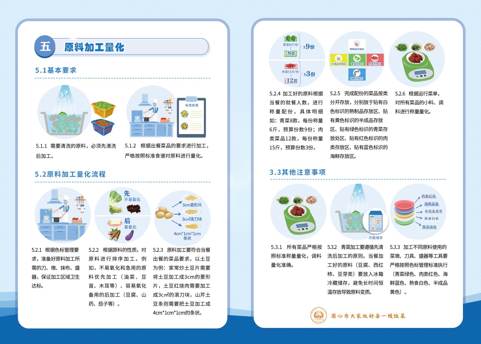 《餐飲服務操作規(guī)范》(圖解版)是在對原材料驗收、檢測、入庫、清洗、加工量化,菜品制作、留樣,出餐結算,餐具清洗消毒和衛(wèi)生清理等全流程崗位工作標準進行了多次現(xiàn)場演練、推敲驗證和反復優(yōu)化完善的基礎上制作的,圖片和漫畫的使用上也盡可能地貼近工作實際,是餐飲服務實際工作場景和工作步驟的真實寫照。通過標準漫畫這種可視化形式,固化和直觀展示餐飲服務標準流程,為開展餐飲服務標準培訓和實施提供了基本遵循。