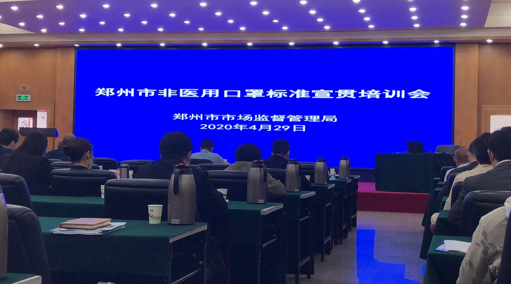 2020年4月29日,鄭州市非醫(yī)用口罩標(biāo)準(zhǔn)宣貫培訓(xùn)會在鄭州市市場監(jiān)督管理局九樓會議室召開。鄭州市市場監(jiān)督管理局副局長王擁軍,河南工業(yè)大學(xué)標(biāo)準(zhǔn)化與質(zhì)量檢測中心主任助理、全國糧油標(biāo)準(zhǔn)化技術(shù)委員會糧食儲藏及流通分技術(shù)委員會副秘書長陳衛(wèi)東,國家棉花及紡織服裝產(chǎn)品質(zhì)量監(jiān)督檢驗(yàn)中心副主任憨文軒出席會議。鄭州市所屬各(市、區(qū))、開發(fā)區(qū)市場監(jiān)督管理局標(biāo)準(zhǔn)化科科長,口罩生產(chǎn)企業(yè)負(fù)責(zé)人等參加會議。會議由鄭州市市場監(jiān)督管理局標(biāo)準(zhǔn)化處處長劉彬彬主持。