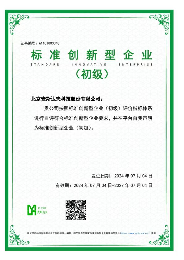 北京麥斯達(dá)夫科技股份有限公司獲評(píng)標(biāo)準(zhǔn)創(chuàng)新型企業(yè)