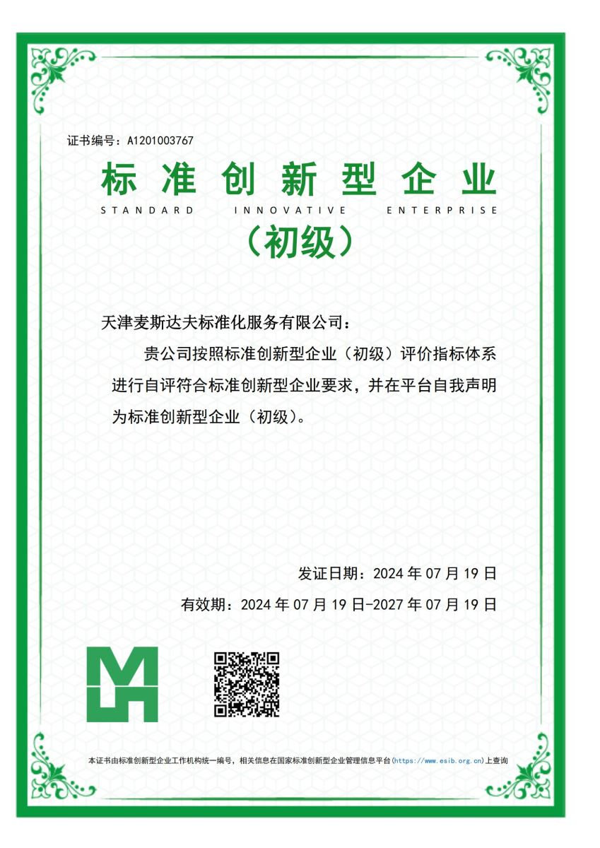 天津麥斯達(dá)夫標(biāo)準(zhǔn)化服務(wù)有限公司獲評(píng)標(biāo)準(zhǔn)創(chuàng)新型企業(yè)