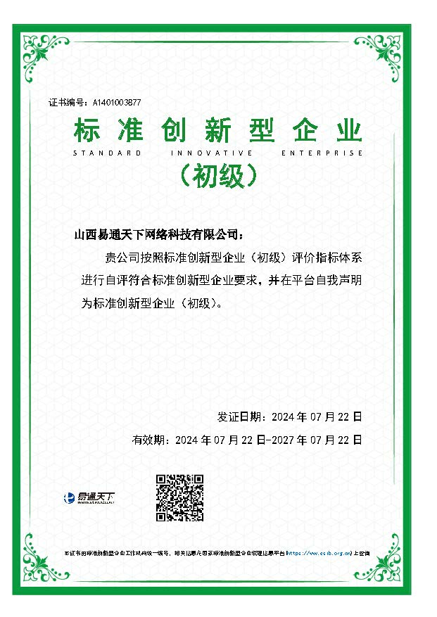 山西易通天下網絡科技有限公司獲評標準創(chuàng)新型企業(yè)