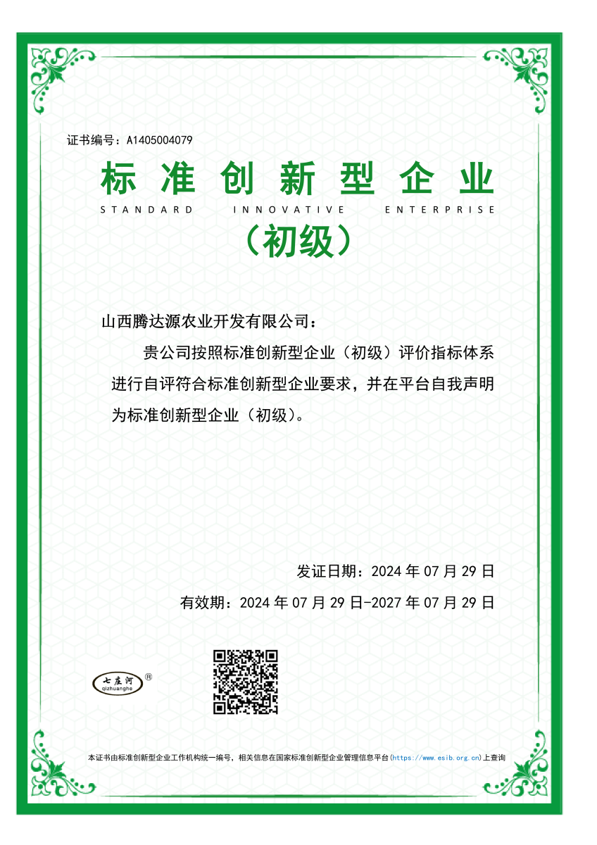 山西騰達(dá)源農(nóng)業(yè)開(kāi)發(fā)有限公司獲評(píng)標(biāo)準(zhǔn)創(chuàng)新型企業(yè)